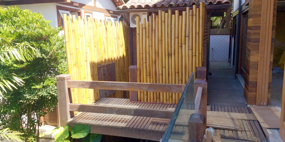 Trabalhamos há 21 anos com bambu, tanto para venda “in natura” de colmos, como para execução dos mais variados projetos como: interiores, exteriores, mobiliários, cercas, forros, painéis entre outros.